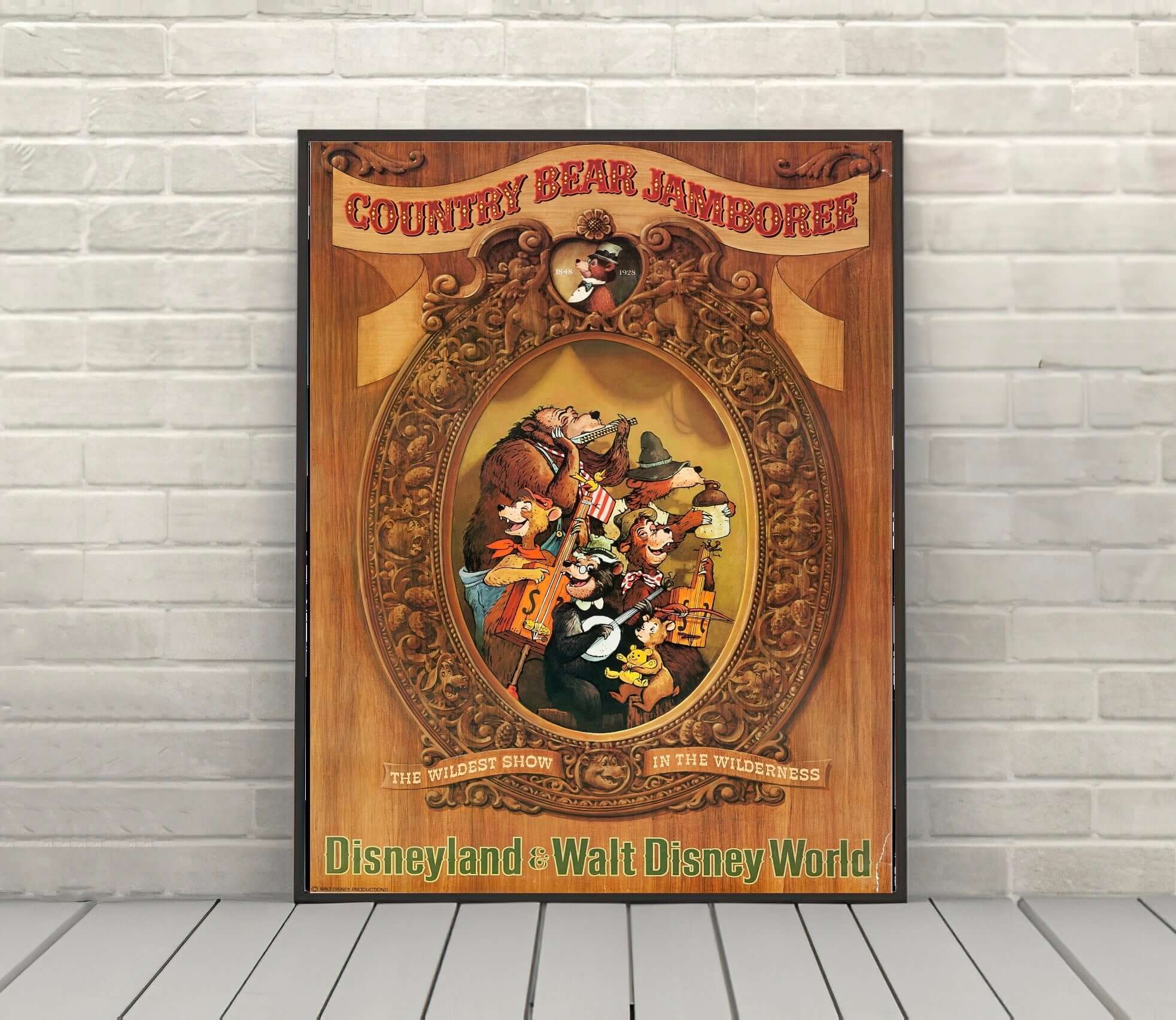This is a poster of Country Bear Jamboree available in many sizes including 8 x 10, 11×14, 13×19, 16×20, 18×24