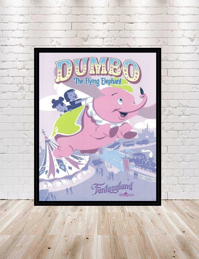 This is a poster of Dumbo the flying elephant from Storybook Circus available in many sizes including 8 x 10, 11×14, 13×19, 16×20, 18×24