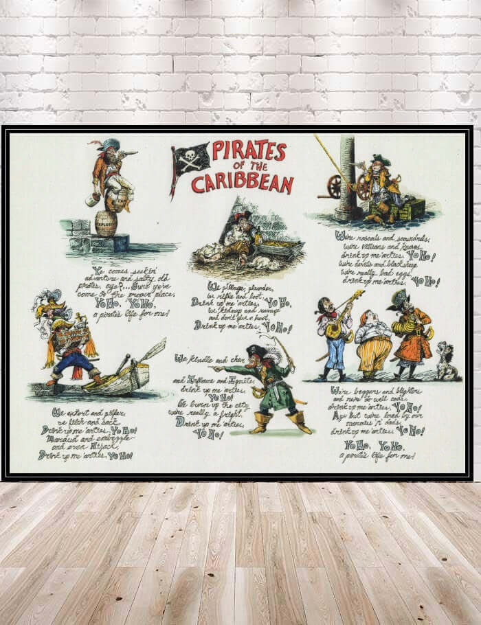 Pirates of the Caribbean Poster Lyrics Poster Vintage Disney Attraction Poster Disneyland Posters Disney World Poster Adventureland Wall Art